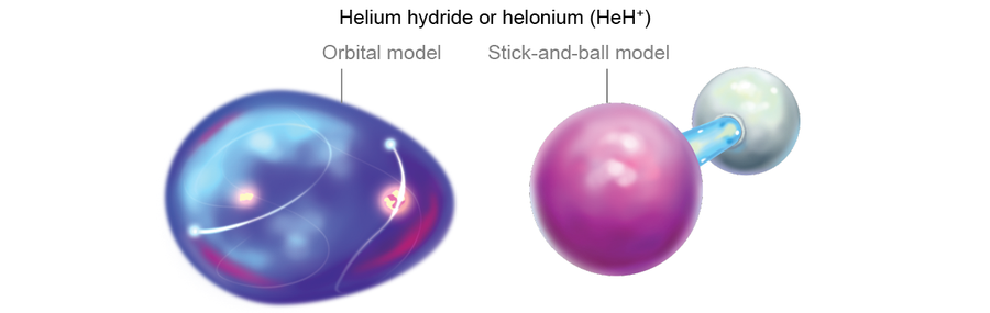 When these two unlikely partners come together, they form helonium: one helium atom bonded to one hydrogen ion, with a positive charge. The plus sign in HeH+ indicates that this molecule is missing an electron, making it an ion—a charged particle.